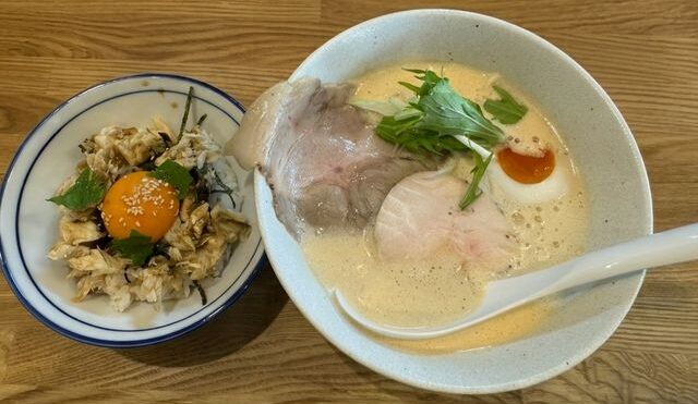- 長男は、「とり白湯醤油そば」+切り落としチャーシュー飯、替え玉