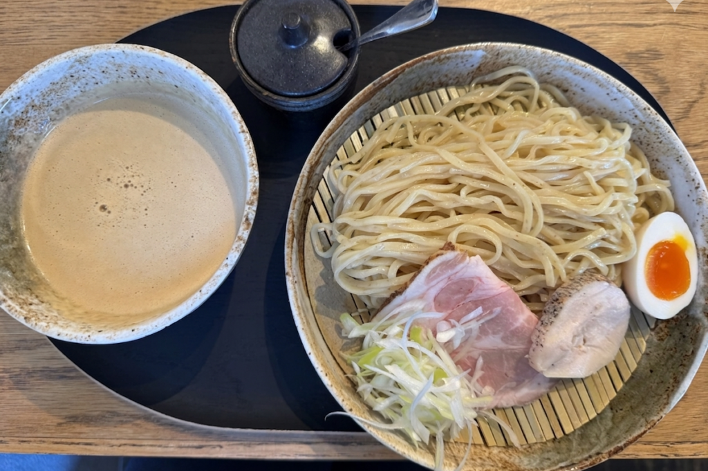 今年訪問時には、これまでにない新しいメニューを発見しました! それがつけ麺です。「提供にラーメンと10分くらい差が出ますけどいいですか」と確認してくださり、「OK!」とお伝えして待ちます。お言葉の通り、茹でた麺をしっかりと氷水で冷やされているのに時間がかかっていました、感謝。